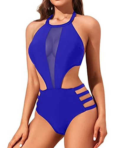 Elevate your poolside look with this stylish and sophisticated high neck halter cutout monokini one piece mesh swimsuit, perfect for any summer getaway.