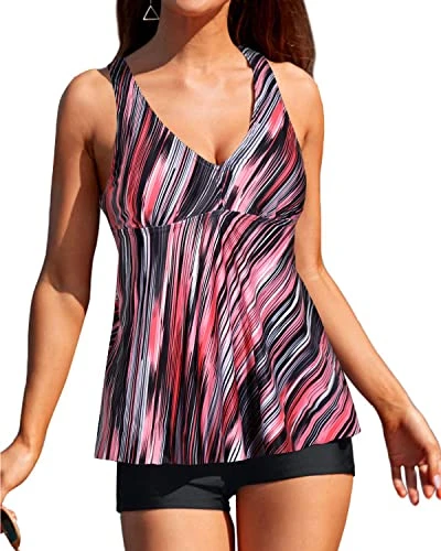 Experience ultimate comfort and support with these two piece tankini swimsuits, featuring adjustable shoulder straps, triple back straps, and a removable padded push up bra.