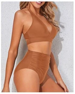Elevate your beach style with this Women Two Piece Bandeau Swimsuit Cheeky High Waist Bikini Set High Cut Bathing Suits with Bottom, featuring soft and comfortable fabrics that flatter your curves and provide tummy control.