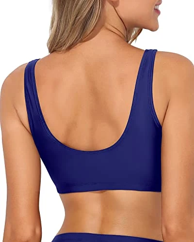 Make a statement this summer with this versatile and stylish black sports bra swimsuit top that offers good support and beautiful shape with its push-up scoop neck design.