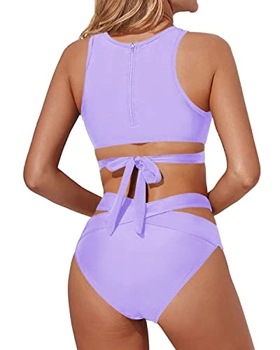 Make a statement at the pool or beach in this bold and beautiful high neck cutout criss cross bandage bikini set, featuring a supportive push-up bra and adjustable tie waist for a perfect fit.