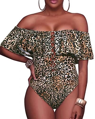 Step up your swimwear game with this stylish and versatile one-piece, featuring removable straps, a padded push-up bra, off-shoulder flounce, cross lace-up design, and high-quality stretchy and comfortable material.