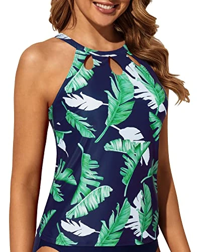 Elevate your swimwear collection with this high neck halter key hole tankini top, featuring a supportive hook closure and removable padded push up bra for the perfect shape.