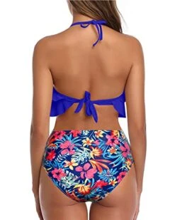 Make a splash in this women’s two-piece swimsuit with a flattering high-waisted bottom and adjustable, V-neck top for the perfect fit.
