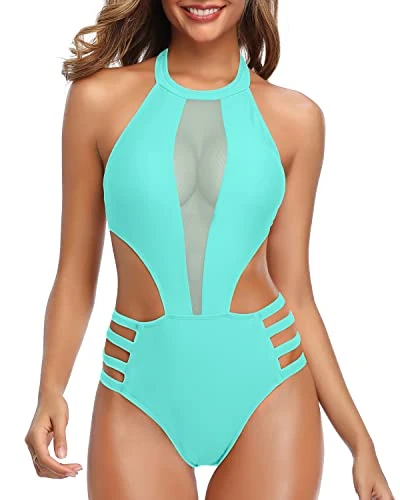 Look and feel your best in this elegant high neck halter cutout monokini one piece mesh swimsuit, perfect for any beach or tropical getaway.