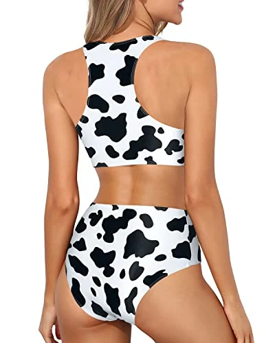 Perfect for any water activity, this high waisted sporty racerback bikini set is durable and comfortable, with its elastic and smooth fabric.