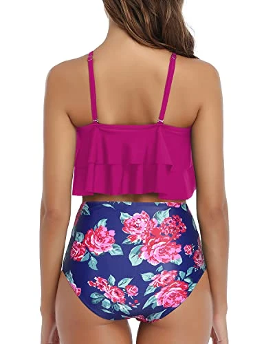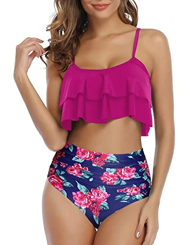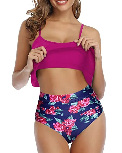 Ruffle High Waisted Bikini Set with Removable Padded Push Up Bra: This two piece swimsuit is designed to help you look and feel your best, with its charming ruffled top and figure-flattering ruched bottom.