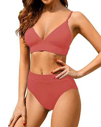 Get ready for summer with this sexy two-piece swimsuit featuring a V-neck top and cheeky, athletic-style bottom with full coverage.Great choice for women of all ages.