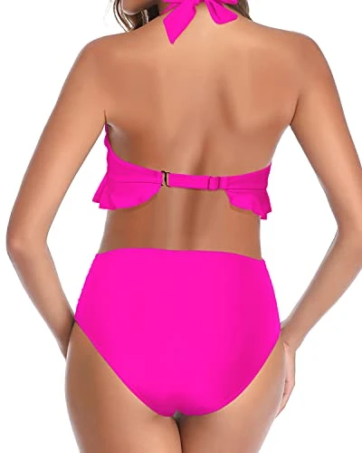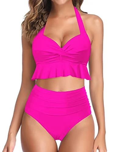 Look effortlessly chic in this retro-inspired Women’s Two Piece Swimsuit with a ruffled flounce longline top and high waisted ruched bottom for tummy control.