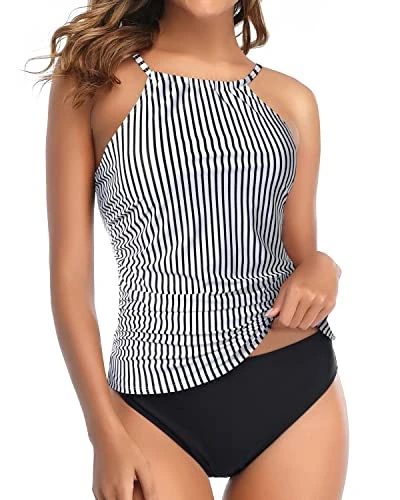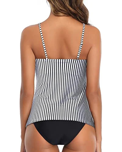 Tummy Control Two Piece Tankini Bathing Suit-Black And White Stripe