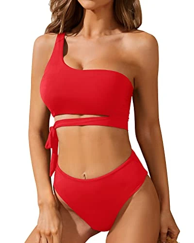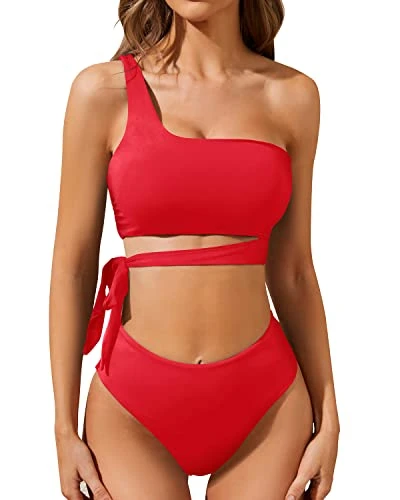 Get ready to turn heads with this Women’s One Shoulder Tie Waist Bikini Set that features a chic high cut design, a flattering cutout bandeau top with a self-tie elastic bandage, and a high-quality, soft, and durable fabric that’s perfect for any water activity.
