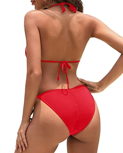 Two Piece String Bikini Set Triangle Top For Women-Red