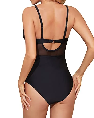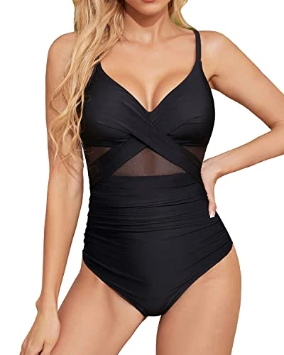 Feel confident and sexy in this one piece swimsuit featuring tummy control, push up padding, and a cutout mesh front cross design.