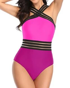 With its wide shoulder straps and padded push-up bra, our swimsuit offers both comfort and support, allowing you to swim with confidence. The combination of a see-through mesh round neck, U-back design, and ruched tummy control creates a stunning, slimming effect, making it a perfect choice for beach parties, vacations, or your honeymoon in Hawaii.