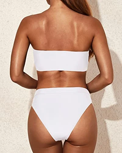 Elevate your swimwear game with this Women Two Piece Bandeau Swimsuit Cheeky High Waist Bikini Set High Cut Bathing Suits with Bottom, designed with soft and stretchy materials that provide comfort and support while showing off your curves and lengthening your legs.