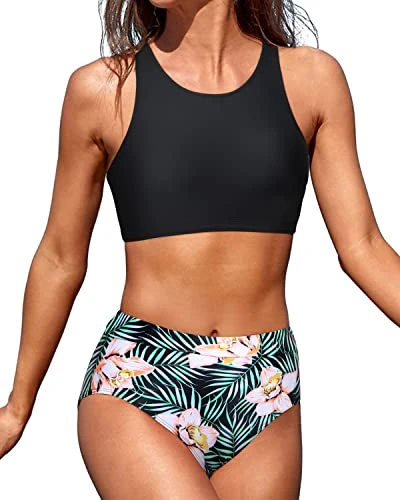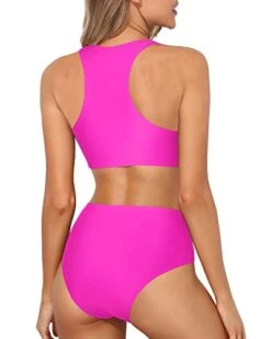 This high waisted sporty bikini set for women is the perfect choice for all kinds of water activities, from swimming and surfing to beach volleyball, with a flattering design that looks great on women of all ages and sizes.