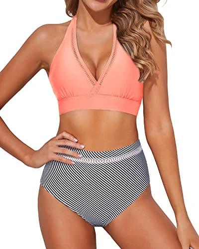Get beach-ready in these stunning two piece swimsuits for women, featuring a high waisted bikini set with tummy control and full coverage bottoms, along with a sexy mesh design and removable padded bra for added support and shape.