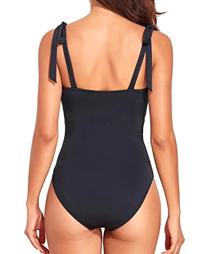 Women Tummy Control One Piece Swimsuits Halter Vintage Swimwear-Black