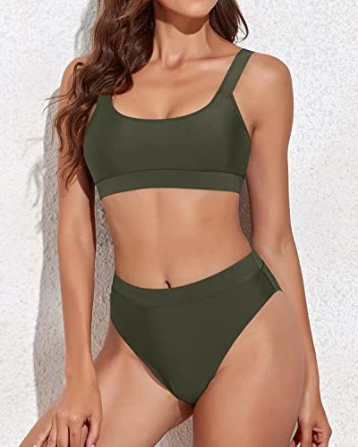 Show off your curves in style with this high waisted teen scoop neck sport bikini set, featuring a supportive bikini top and cheeky bottoms with tummy control.