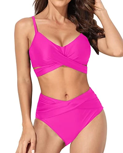 Flaunt your curves and feel confident in this stylish wrap push-up bikini set with adjustable straps and a twist front detail.