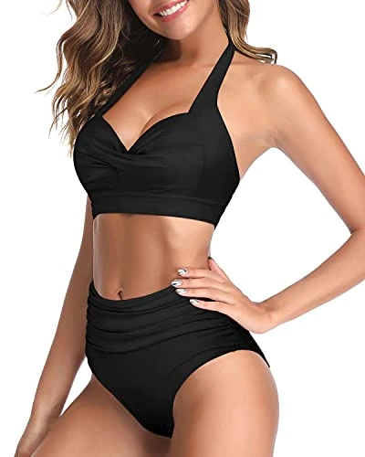 Flaunt your curves and feel comfortable in the 2 Piece High Waist Bikini with High-Cut Legs, featuring a pleated front panel and comfortable stretchy material that hugs your curves in all the right places.